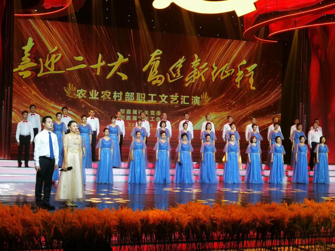 9月28日,机关服务局圆满完成“喜迎二十大·奋进新征程”农业农村部职工文艺汇演录制。节目《把一切献给党》以声情并茂的朗诵、饱含深情的歌唱、恢宏大气的舞蹈,讴歌了中国共产党以人民为中心的价值追求,展示了后勤职工爱党爱国、积极向上的精神风貌 ,赢得了导演组的高度赞扬。